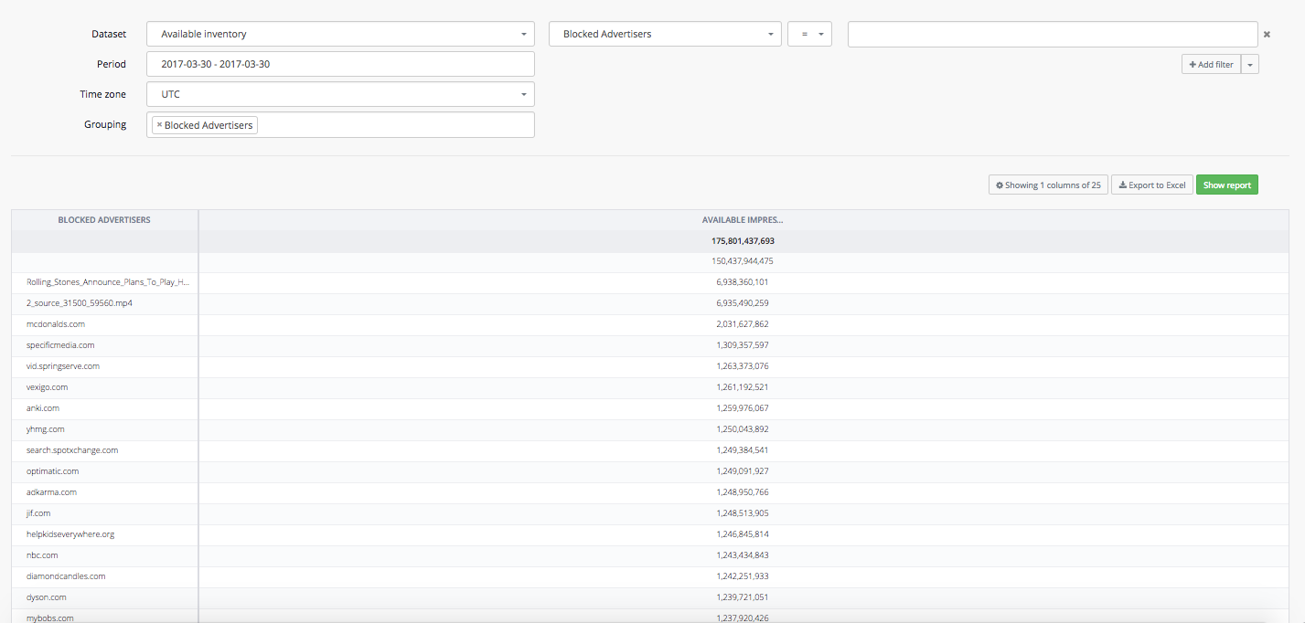 With "Available inventory report" you can gain access to the information about blocked advertisers, in order to exclude them from your campaign set-ups and targeting.