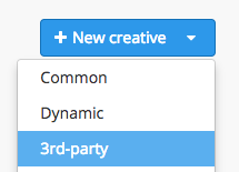 3rd-party creative is an ad tag that calls another ad server, uploaded using JS or Iframe. To upload a 3rd-party creative, choose the ‘3-rd party’ option in a menu in the "Creatives" tab.