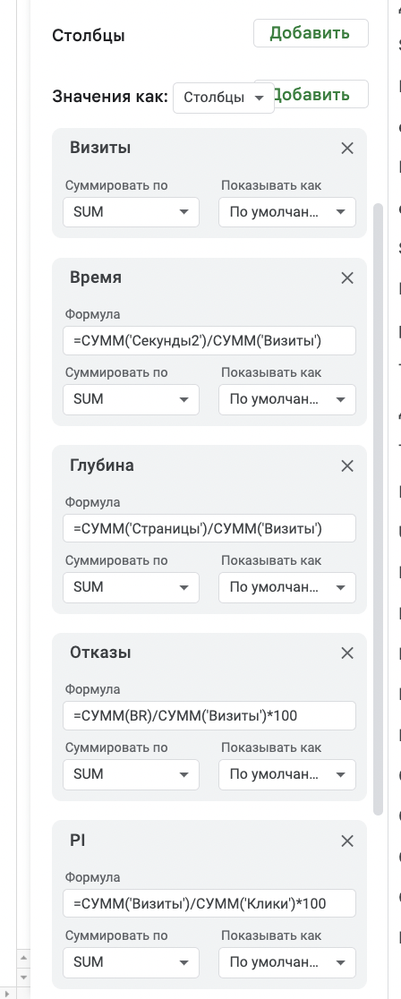 1)Пример настроенной сводной вы можете найти в файле: Яндекс Метрика / Google Analytics. Для того, чтобы получить возможность его редактирования, нажмите "Файл" и "Создать копию".