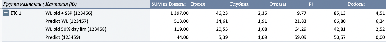 1)Выберете Dataset: "Расширенный отчет по кампаниям"