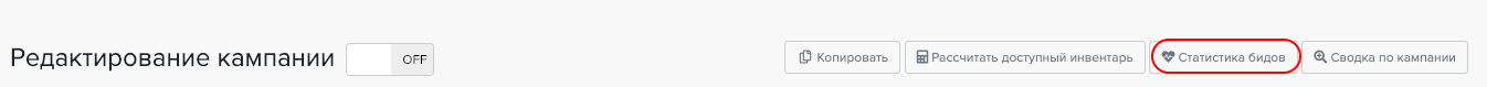 Шаг 1. Заходим в редактирование рекламной кампании и нажимаем на кнопку "Статистика бидов"
