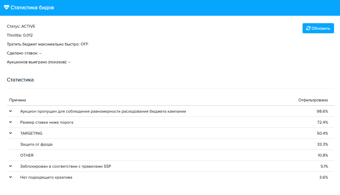 Получить более развернутую информацию касательно статистики бидов Вы можете, посмотрев наш обучающий ролик: