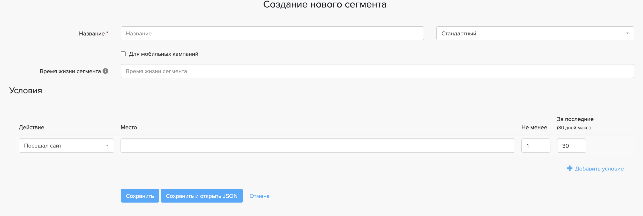 В данном разделе вы можете создавать кастомные сегменты и таргетироваться на них в размещениях.