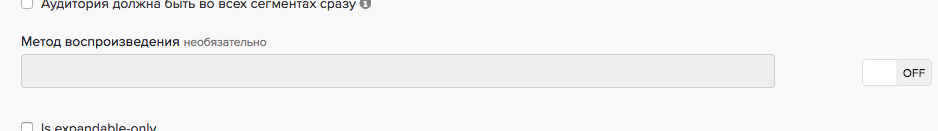 "Аудитория должна быть во всех сегментах сразу" - активирование данной опции позволяет пересечь выбранные сегменты. Т.е. человек, которому покажется реклама, должен удовлетворять всем выбранным интересам (логическое "И"). По умолчанию, без активирования данного чекбокса, объявление покажется человеку, входящему хотя бы в один из выбранных сегментов (т.е. логическое "ИЛИ"). Рекомендуем пересекать не более 2 сегментов в одной кампании, чтобы не ограничить объем доступных показов слишком сильно.
