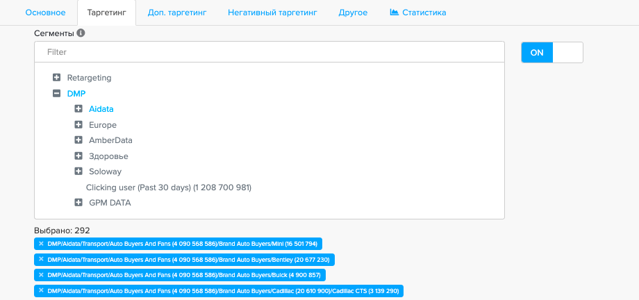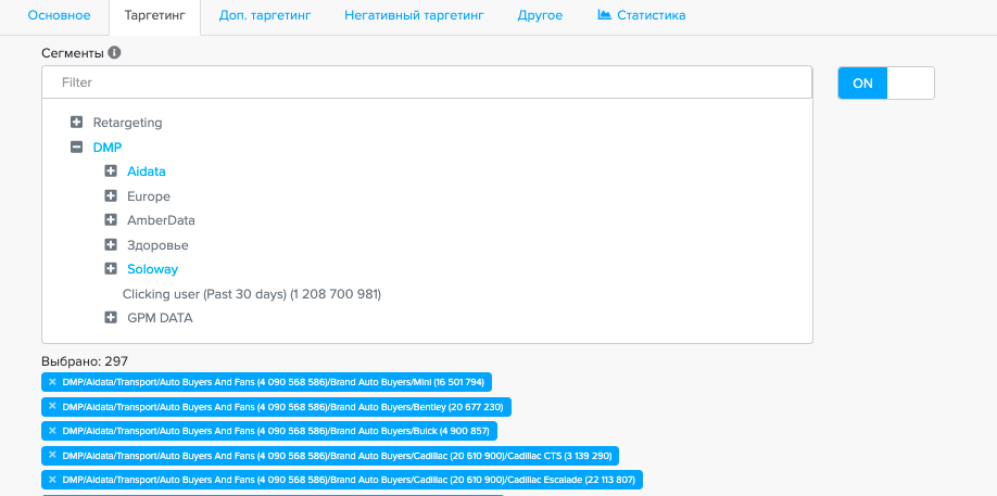 Таргетинг на сегменты нескольких DMP