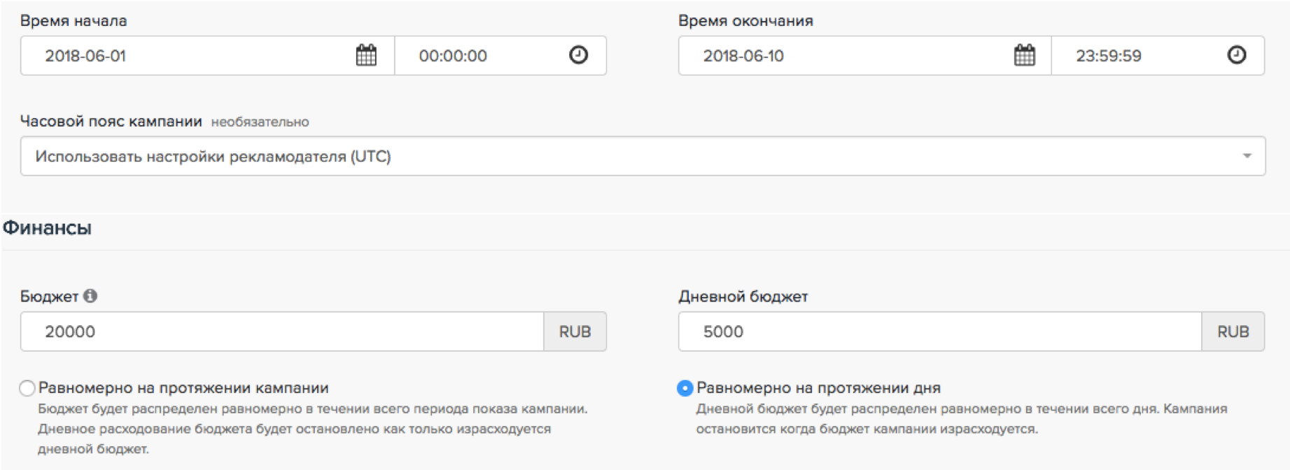 Следите за ходом кампании и раз в день проверяйте, как должен меняться дневной бюджет.